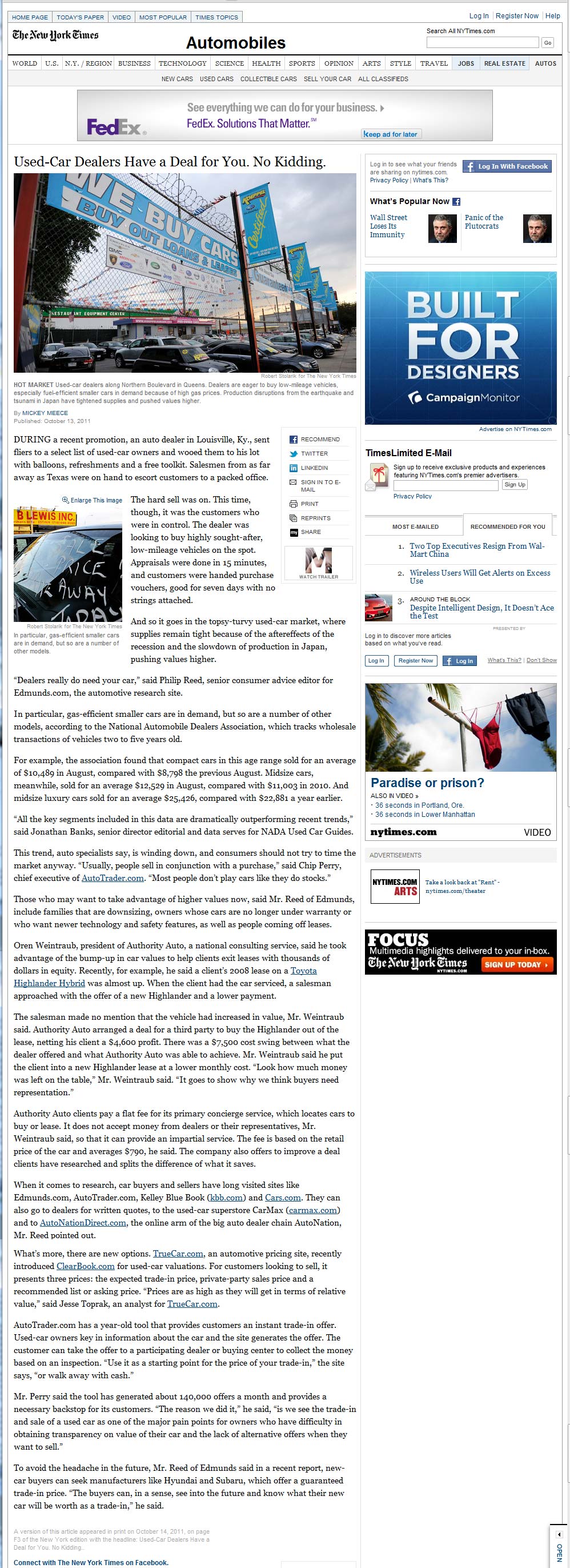 This is the equivalent of having a shark of a friend in the business. I will never buy a vehicle again without calling Kim first. Give him a call and just see what he can do for you...I cannot say enough good things about working with Oren and his colleagues at Authority Auto. My husband and I have now leased two cars each through Authority, and my father (a stickler for getting the very best deal possible) is another happy customer. Oren is knowledgeable, focused, principled, quick to respond, and always there as an adviser and advocate for his clients. Not only do I feel I've gotten the best lease rates possible because of his connections and negotiating skills; the process has taken me virtually no time, and each new car has been delivered--and the old car picked up--at no extra cost. I wish everything in life was as simple as Oren has made car leasing for me.